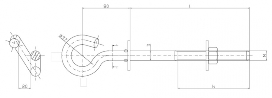| Shkk 20x250 | 50 x 50 x 4 | M20 | 20 | 250 | 120 |