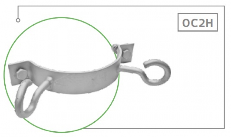 Obejma z dwoma hakami OC2H służy do mocowania osprzętu na słupowych konstrukcjach wsporczych.