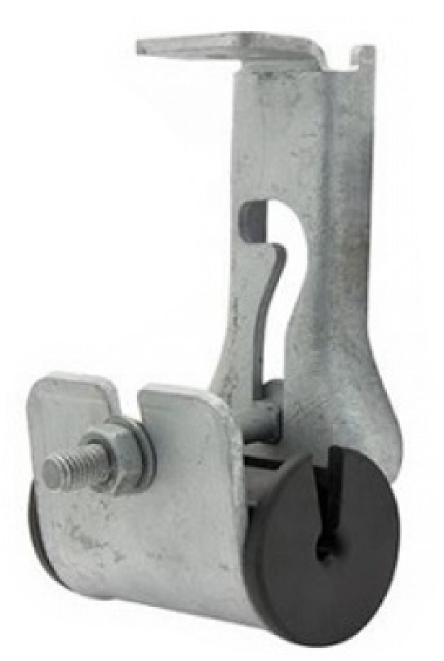 Korpus uchwytu wykonany ze stali cynkowanej ogniowo. Wkładka dobierana do średnicy kabla wykonana z materiału odpornego na działanie warunków atmosferycznych.