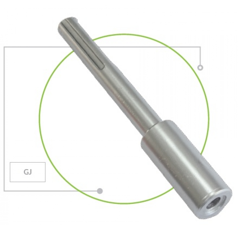 Głowica mechaniczna jedno-elementowa typu GJ przystosowana do pogrążania prętów uziemiających typu SU urządzeniami udarowymi z uchwytem typu SDS MAX. Wykonana jest ze stali o wysokiej wytrzymałości na obciążenia mechaniczne związane z przenoszeniem udaru podczas pogrążania.