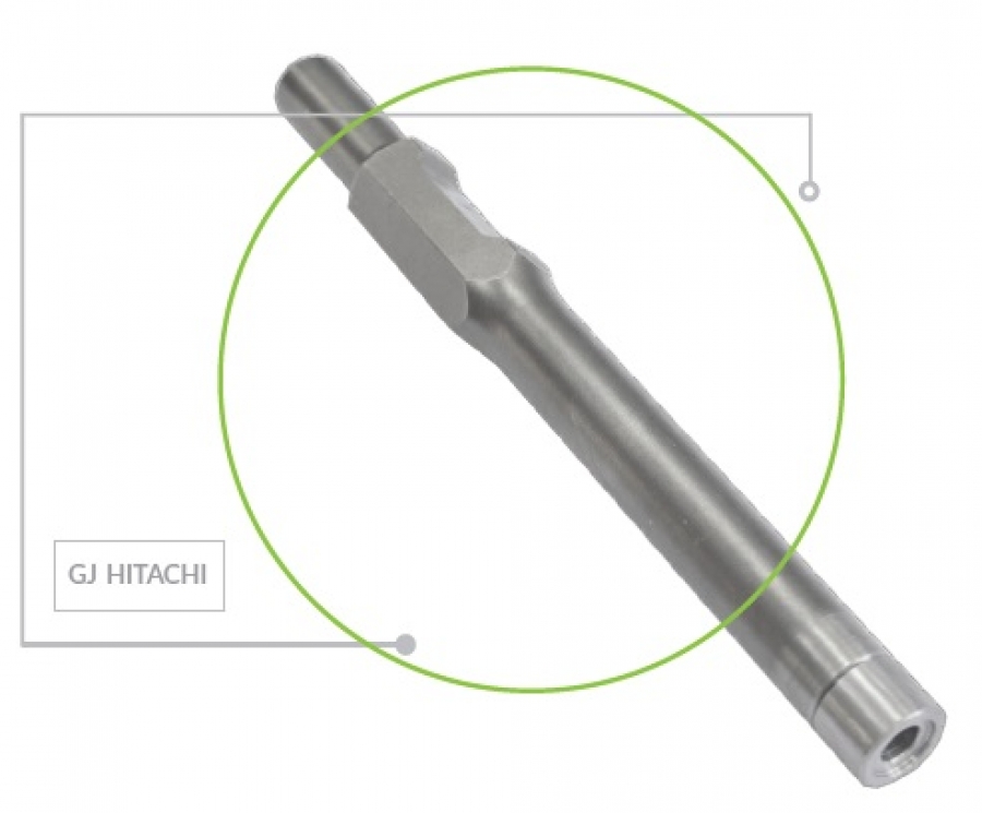 Głowica mechaniczna jedno-elementowa typu GJ HITACHI przystosowana do pogrążania prętów uziemiających typu SU urządzeniami udarowymi z urządzeniem udarowym HITACHI typ uchwytu H65SB. Wykonana jest ze stali o wysokiej wytrzymałości na obciążenia mechaniczne związane z przenoszeniem udaru podczas pogrążania.