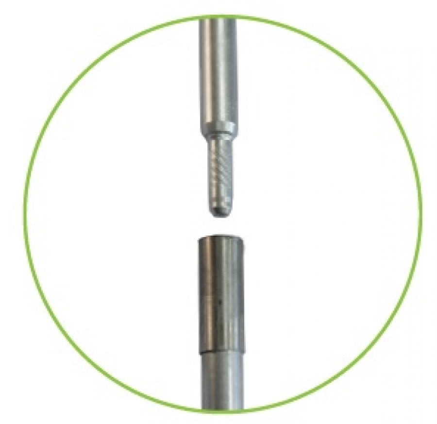 Nierdzewne zakończenie pręta chroni przed uszkodzeniem warstwy cynkowanej podczas pogrążania uziomów głowicami mechanicznymi oraz ręcznymi. Tulejka nierdzewna wzmacnia i stabilizuje połączenie.